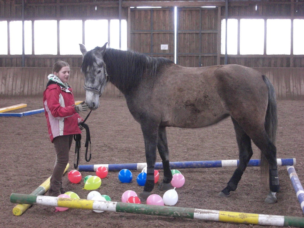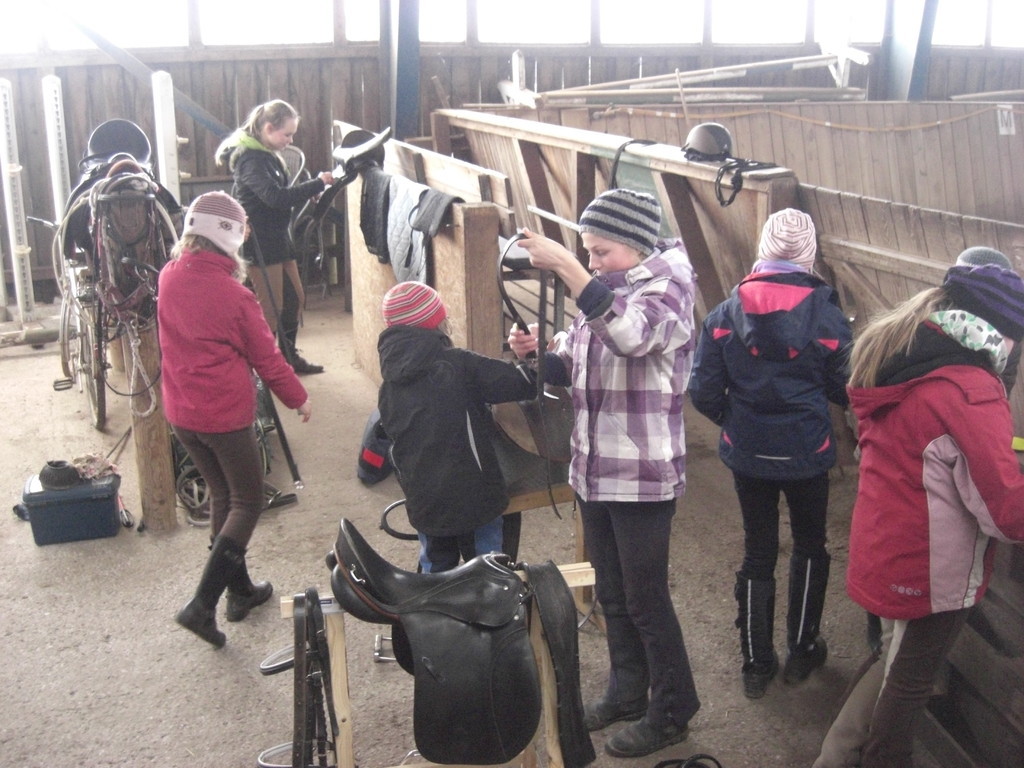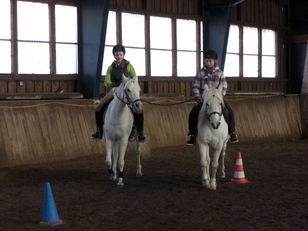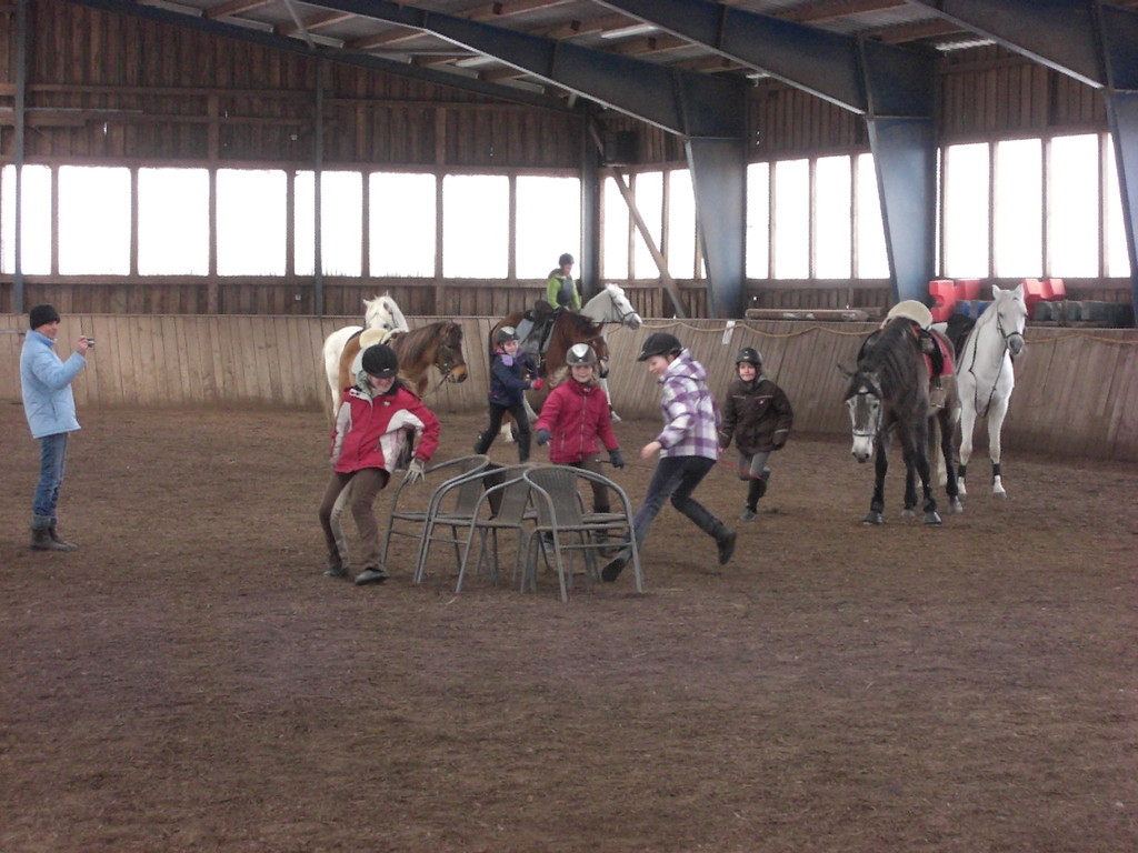 So hatten wir uns unsere Osterreitwoche nicht vorgestellt - Minusgrade und 20 cm Schnee. Teilnehmer kamen zu spät, weil sie in Schneewehen feststeckten und wir mussten fast immer in die Halle. Aber so bunt, lustig und abwechslungsreich hatten wir es noch nie. Über Bodenarbeit, Gelassenheitstrainig, Doppellonge und langer Zügel bis zu Mounted Games und Halsringreiten. Und wir haben sogar Reise nach Jerusalem gespielt - natürlich mit den Ponys! Am Ende der Woche bekam jede Teilnehmerin ein kleines Geschenk und wir haben den Eltern unsere Wochenarbeit vorgestellt. Schön wars!