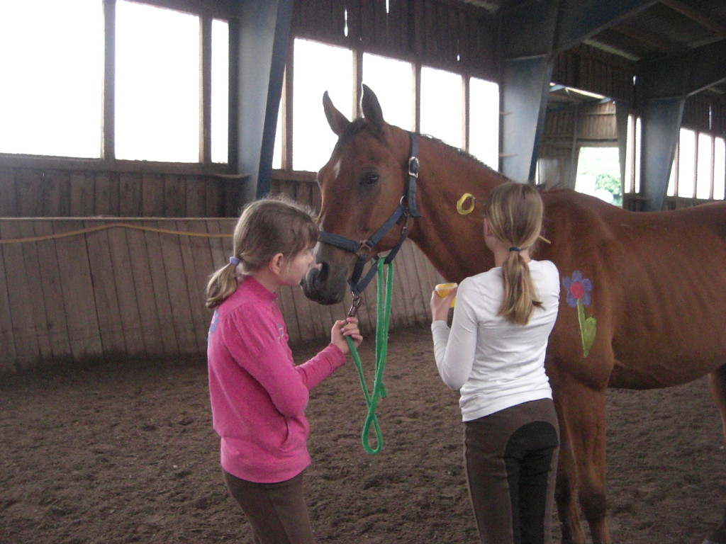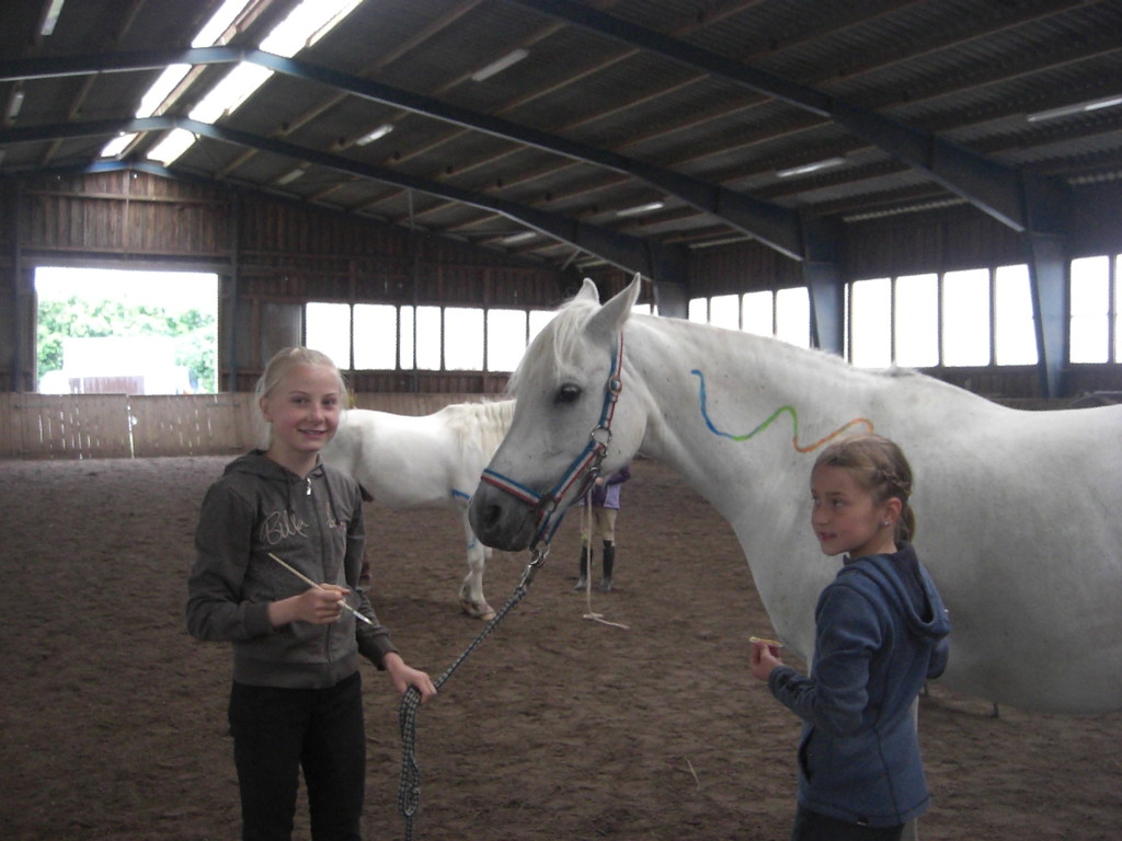 Die erste und dritte Sommerferienwoche war es wuselig auf dem Krumbecker Hof. Jede Menge Kinder, Ponys und Pferde - teilweise in Neonfarben. Wir hatten mal wieder eine Menge Spaß beim Horse-painting, Freispringen,Halsring- und Ohnesattel-reiten. Sowie springen,longieren,ausreiten und sogar Geburtstag feiern. Während wir in der ersten Woche noch frieren mussten, hätten wir in der Juliwoche ein Planschbecken aufbauen können - so warm war es. Nun sind wir alle braungebrannt und hochmotiviert für die nächsten Reitstunden...
