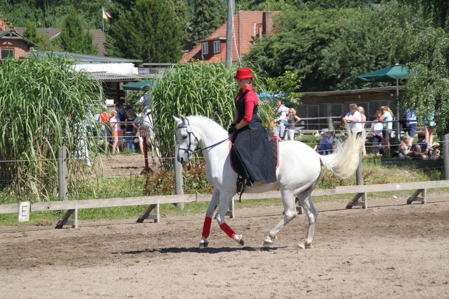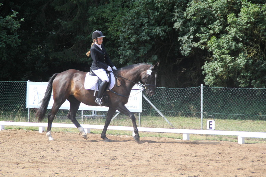 Bahia war ich der E Dressur leicht spannig, so dass Sabrina teilweise Probleme hatte sie punktgenau zu reiten. Trotzdem reichte es für eine 6,4 und erste Reserve.