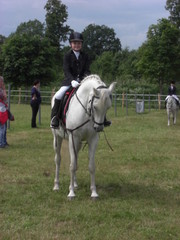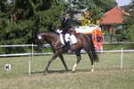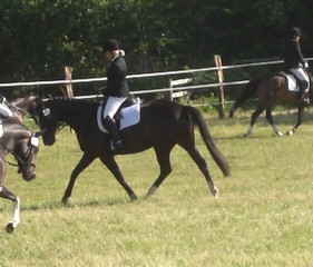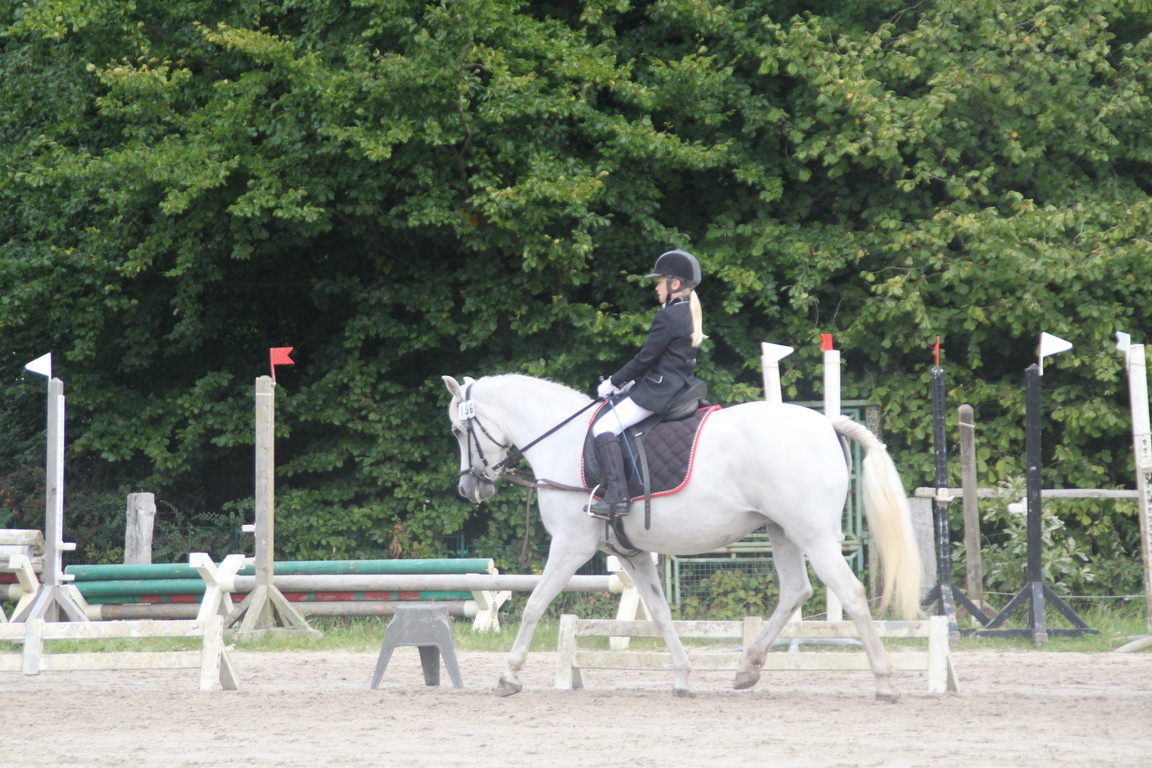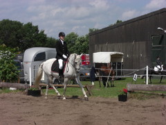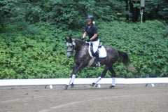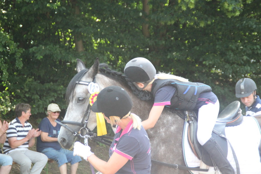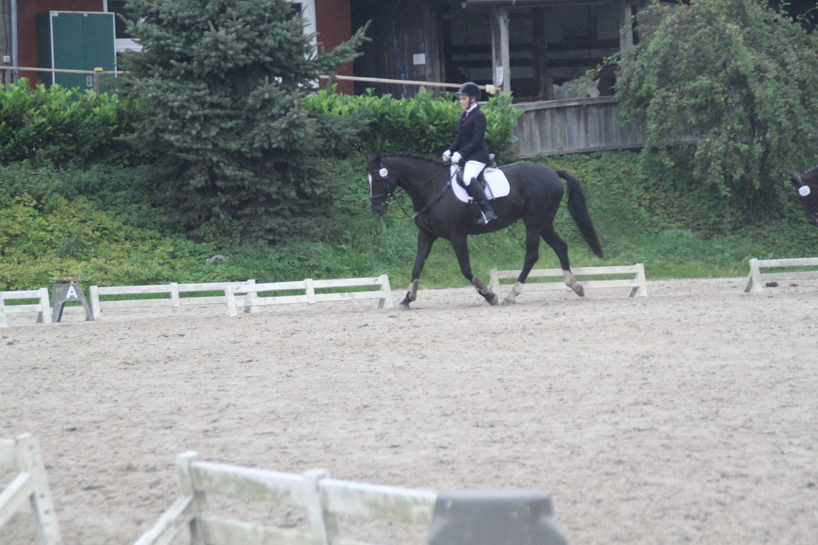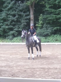 In der Dressurpferdeprüfung war er leicht guckig und hatte etwas Probleme mit dem matschigen Boden, aber auch hier eine Schleife : 6. Platz mit 6,8.