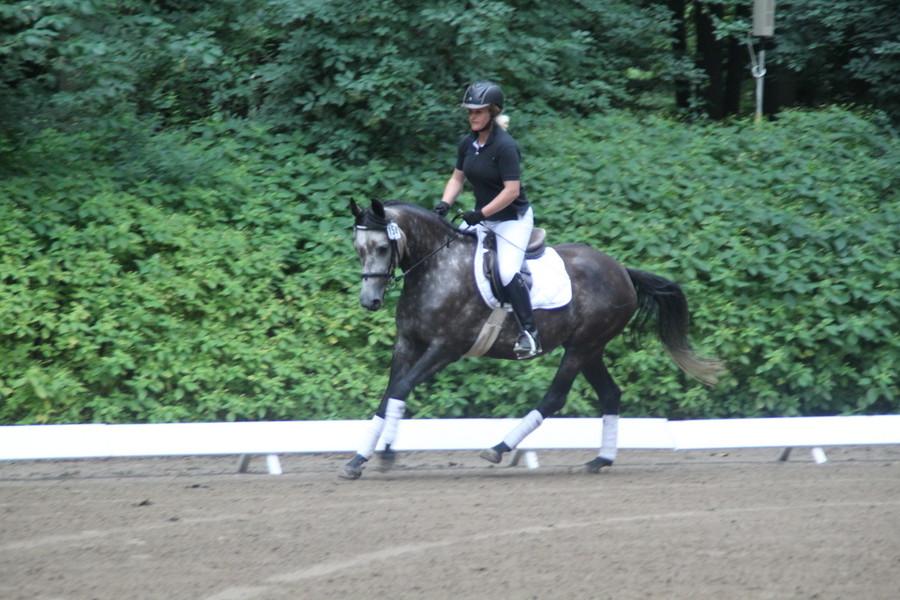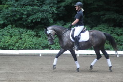 Cassallino läuft eine schöne Eignungsprüfung der Kl. A und wird 1. Reserve. Danach schnell nach Hause und Pferde tauschen, kaum wieder angekommen und auf dem Pferd müssen Steffi und Bahia sofort ins Viereck - ohne Abreiten.