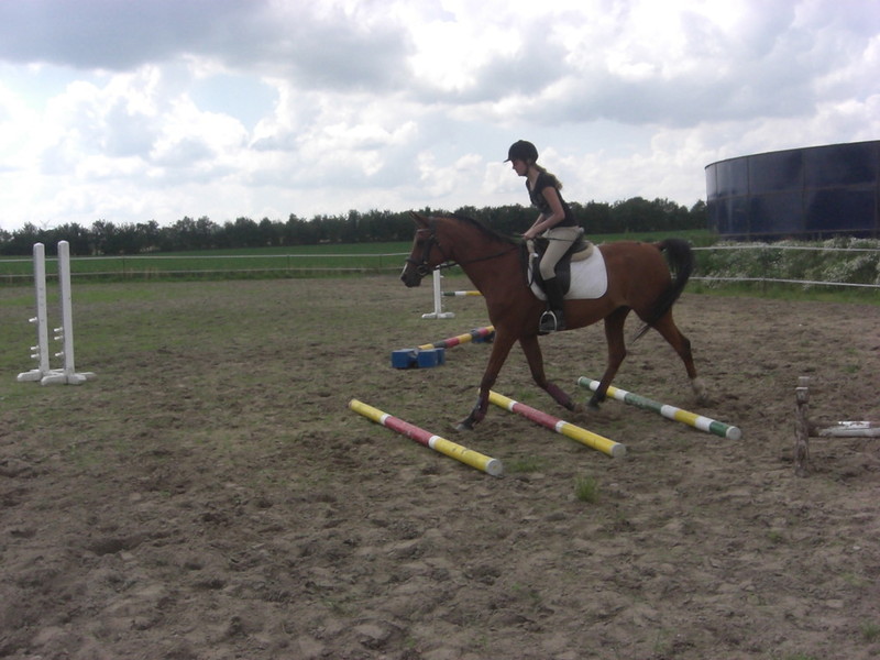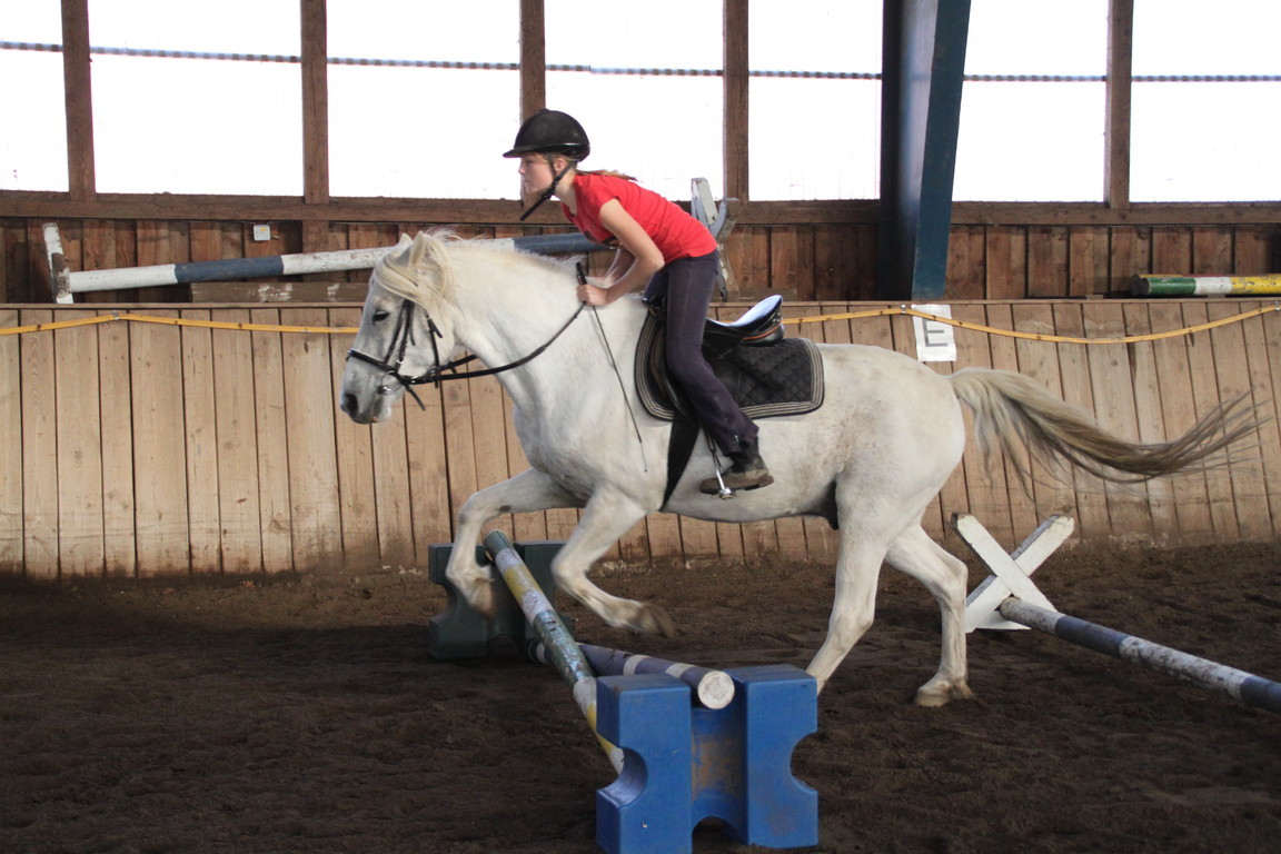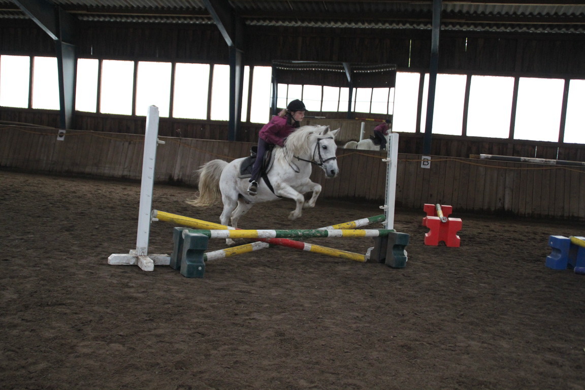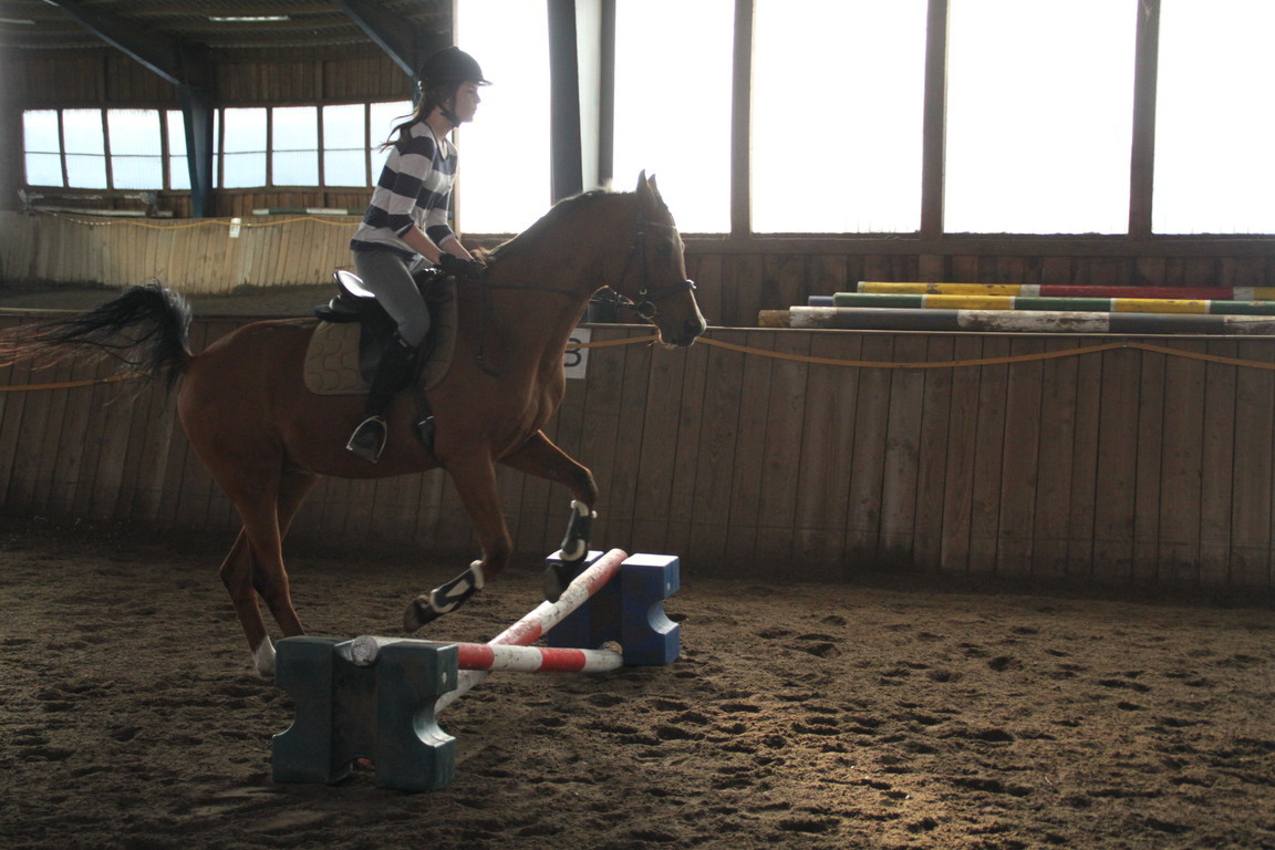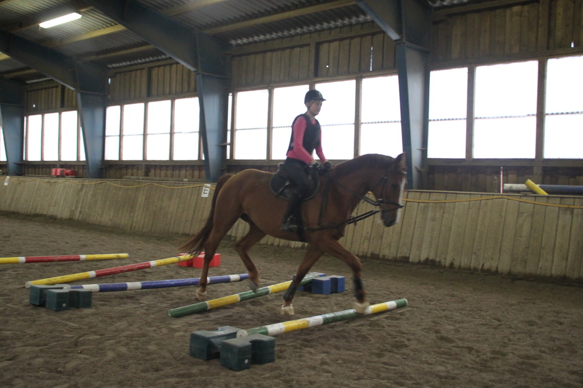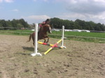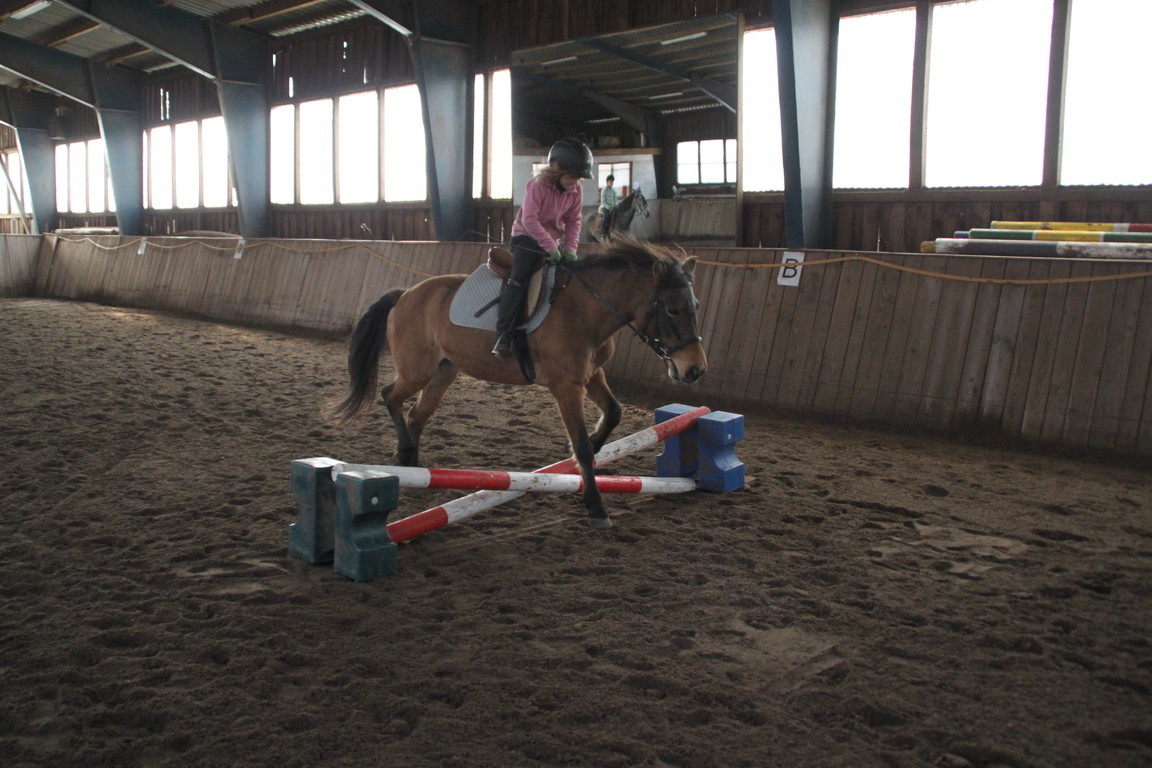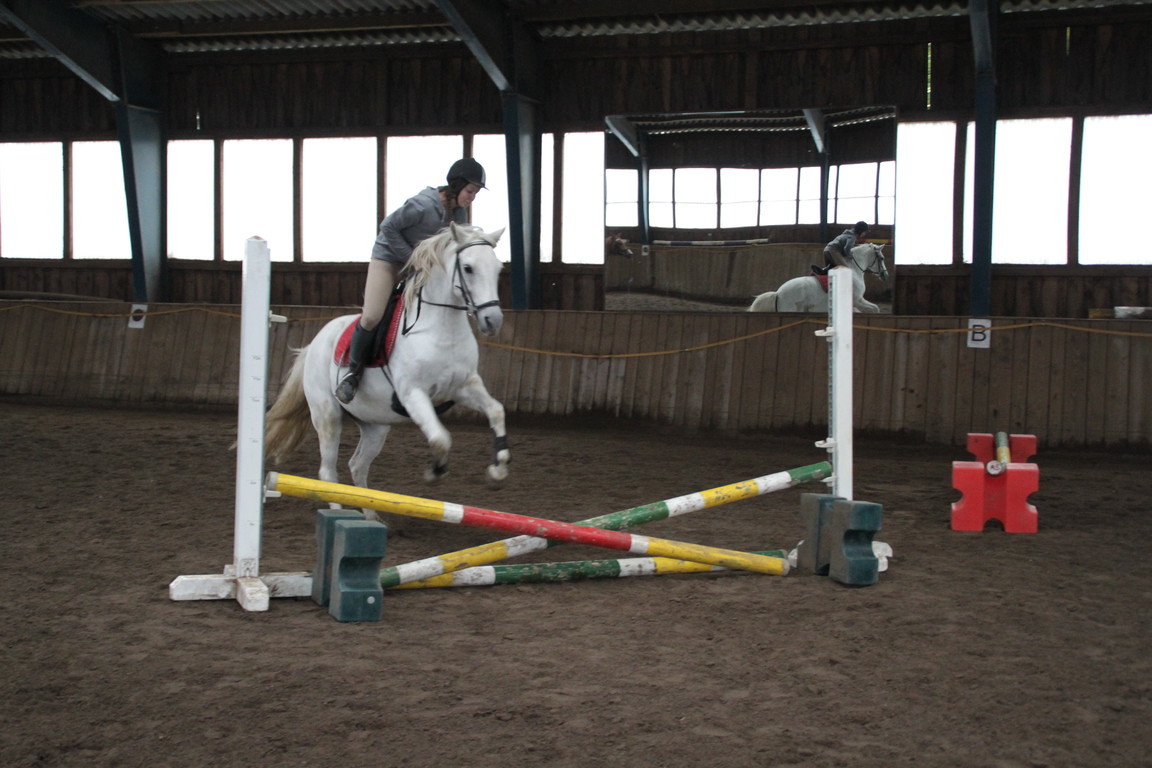 Nachmittags wurde gesprungen. Anfangs ersteinmal Stangenarbeit und einzelne Sprünge, am Ende des Lehrgangs konnten die Teilnehmer dann schon einen ganzen Parcours überwinden.