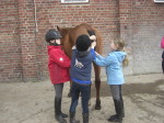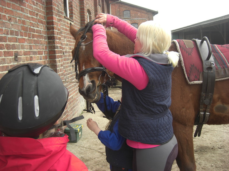 Wir haben erst richtiges putzen, satteln und trensen gelernt (wobei jeder mal probieren durfte) und sind dann raus in die Natur um gemütlich auszureiten.