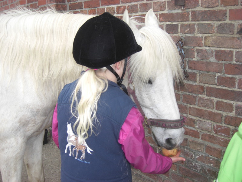 diese Aktion richtet sich eher an die weniger Geübten im Umgang und an Kinder, die mal ausprobieren wollen ob reiten überhaupt das Richtige für sie ist. Wir putzen, satteln, trensen und lernen viel über den Umgang mit Pferden. Das reiten kommt natürlich auch nicht zu kurz.