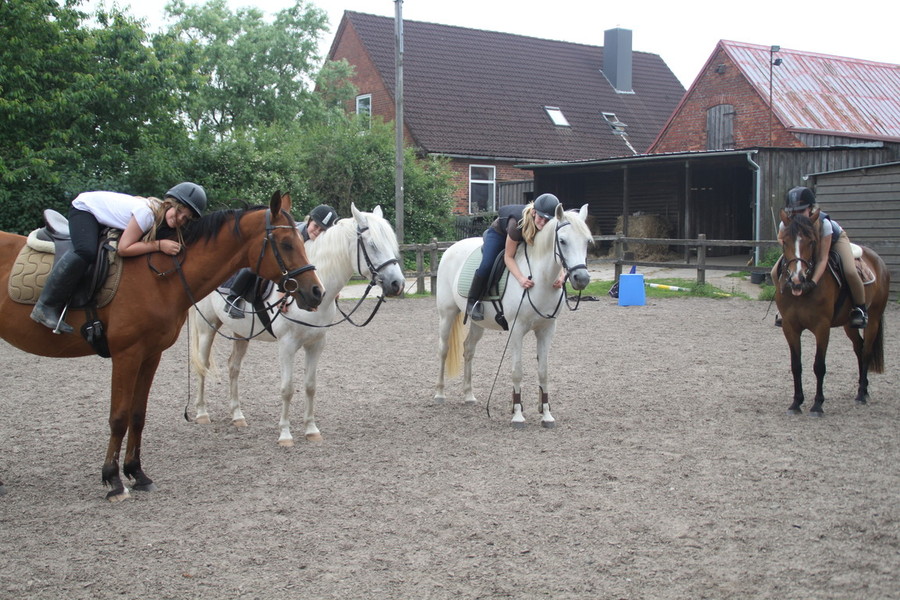 Bei grandiosem Sommerwetter trafen wir uns in dieser Woche täglich auf dem Hof . Ziel der Reitwoche war, auch mal was anderes mit den Pferden zu machen als im normalen Reitunterricht. Die Teilnehmer hatten viele tolle Ideen und so war kein Tag gleich.