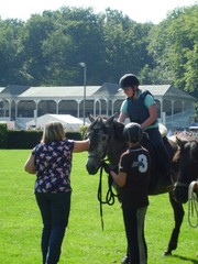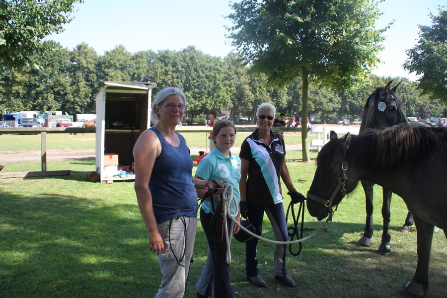 Mona sollte ihren großen Auftritt im Reiterwettbewerb ohne Galopp haben. Grade auf dem Abreiteplatz angekommen fing es an zu regnen und gewittern, so startete sie klitschnass und ohne abreiten und wurde mit dem 2. Platz belohnt.