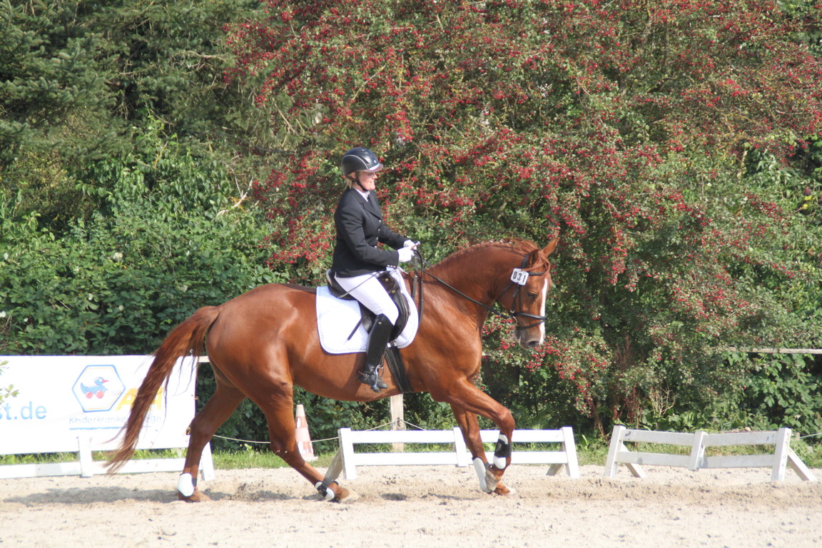 Und es war - wie erwartet - super ! Total ruhig und gelassen lief der "Kleine" seine Runden auf dem Abreiteplatz. Im Viereck guckte er dann schon hier und da, aber liess sich trotzdem super reiten. Am Ende gab es eine 6,5 für einen schönen, harmonischen Auftritt.