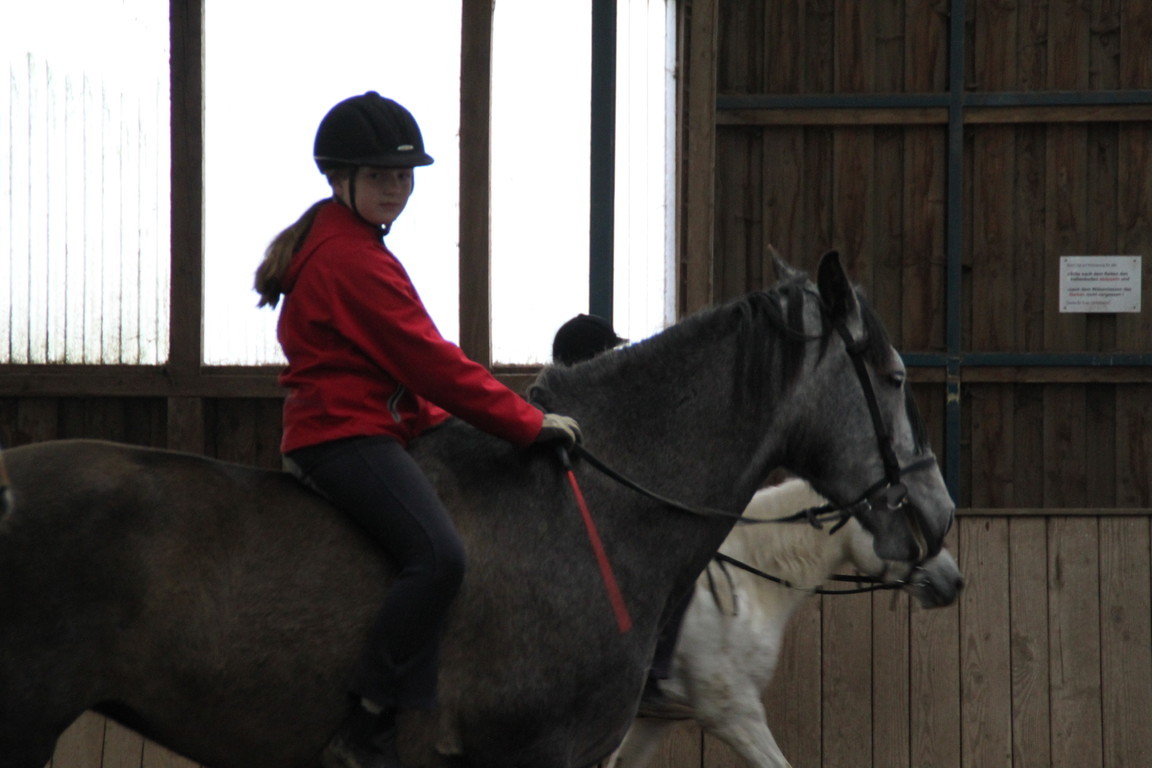 - führen, anbinden, putzen, pflegen, sattel und trensen der Pferde - Grundkenntnisse im Umgang mit Pferden, Bezeichnung des Putz - und Sattelzeugs, Hufschlagfiguren, Reiterhilfen