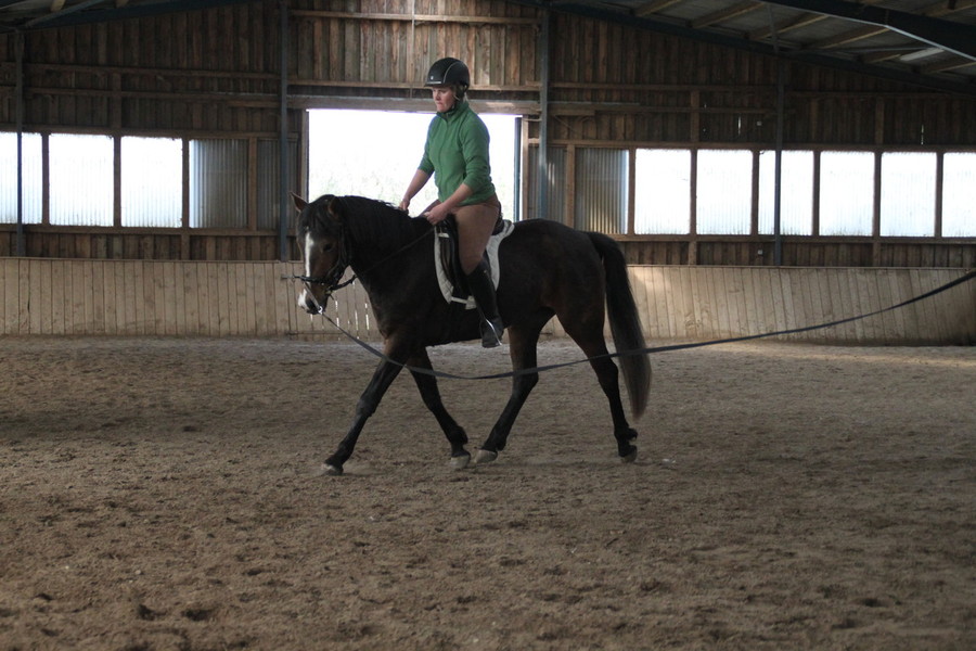 - reiten im Schritt und Trab an der Longe und evtl. in kurzen Reprisen frei hintereinander