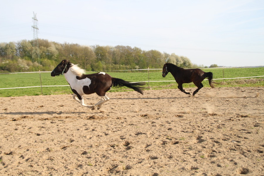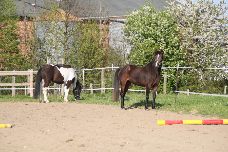 Am 22.4. zogen die neuen Berittpferde Esmiralda ( 3 jähr. Barockpintostute) und Escada la Vita (4 jähr. Reitponystute) auf den Krumbecker Hof. Die Beiden sind sehr neugierig, menschenbezogen und ein Herz und eine Seele. Sie zeigen sich in den ersten Tagen bei der Arbeit schon super motiviert und lernwillig, es macht einfach nur Spaß. Die Barockpintostute steht zum Verkauf - genaueres gern auf Anfrage.
