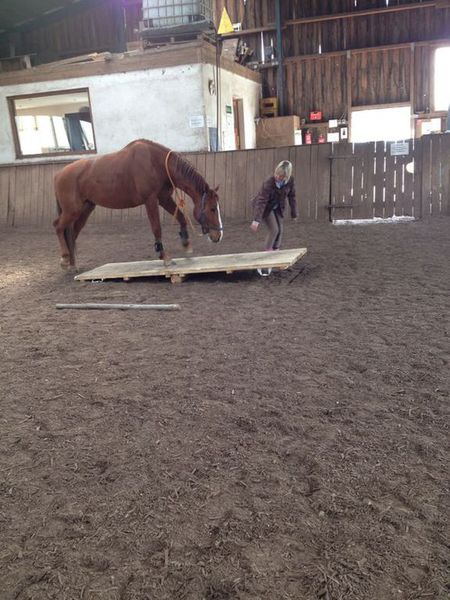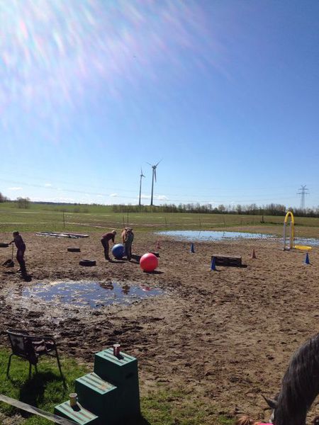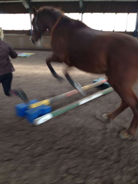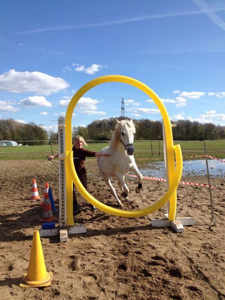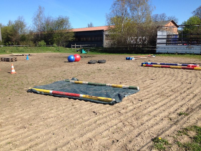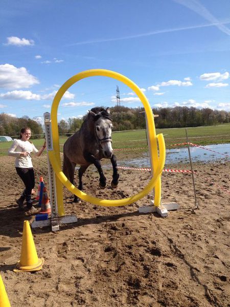 freies Arbeiten ohne Strick; Durchlaufen eines Parcours, der mit einem Springparcours verglichen werden kann. Das Pferd überwindet dabei Hürden, der Reiter läuft nebenher.