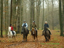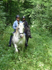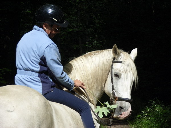 Als Abwechslung für Pferd und Reiter und um die Trittsicherheit der Pferde auf verschiedenen Böden zu fördern reiten wir regelmäßig ins naheliegende Gelände.
